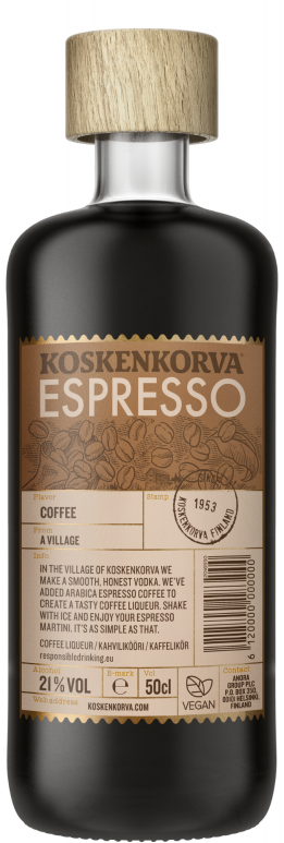 Koskenkorva Espresso е финландски кафен ликьор, създаден от истинско арабика кафе и базиран на висококачествена водка от село Коскенкорва. Това е напитка с интензивен, плътен вкус на тъмно изпечено кафе, допълнен с нотки на тъмен шоколад и карамел