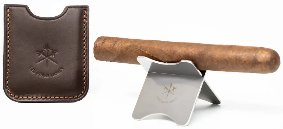 Les Fines Lames ви предлага тази практична и компактна стойка за пури с кожено калъфче, която лесно се побира във всеки джоб.