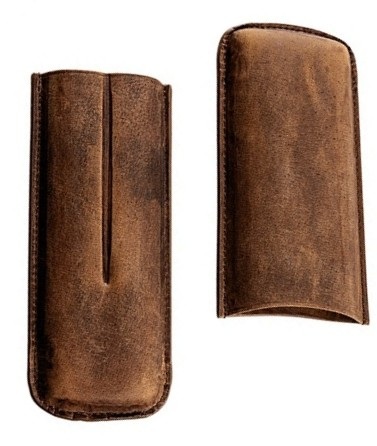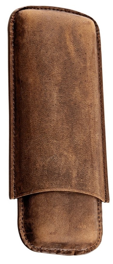 Винтидж калъф за пури изработен от кафява гладка кожа.