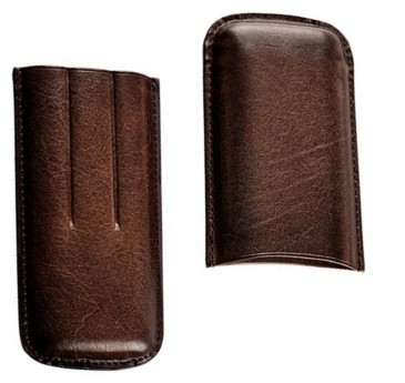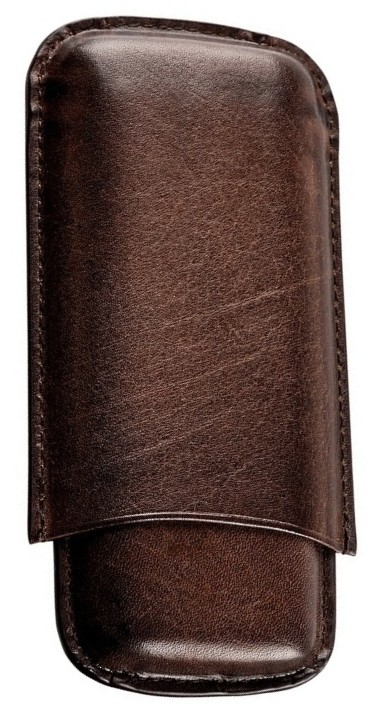 Калъф за пури изработен от тъмнокафява матирана гладка кожа.