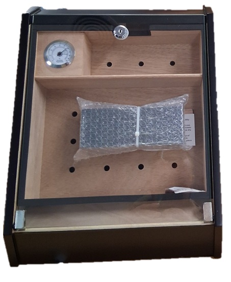 Умидор за съхранение на пури с овлажнител и хигрометър, черен цвят