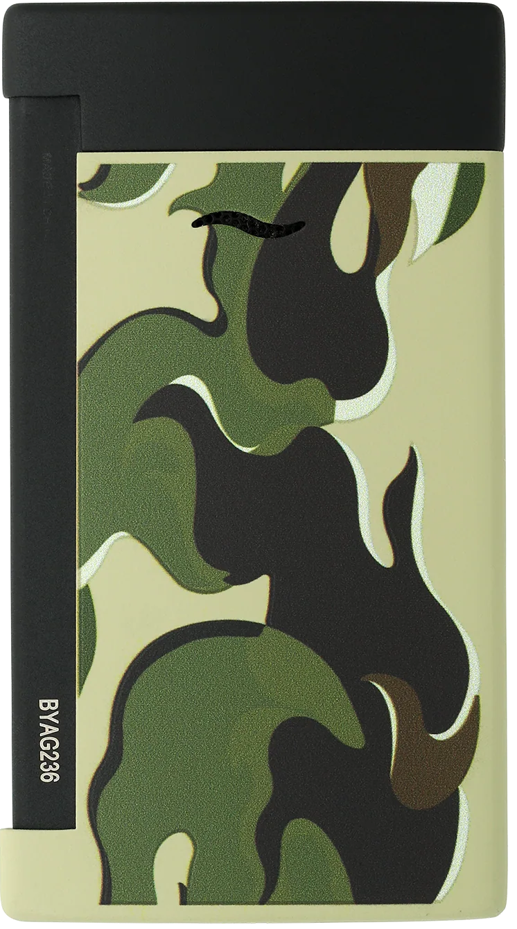 Тази година S.T. Dupont отново въвежда камуфлажния мотив върху своите емблематични продукти. За допълнителна оригиналност, този камуфлаж включва пламъци в ярки нюанси на червено или зелено, създавайки свежа, смела интерпретация на този легендарен дизайн.